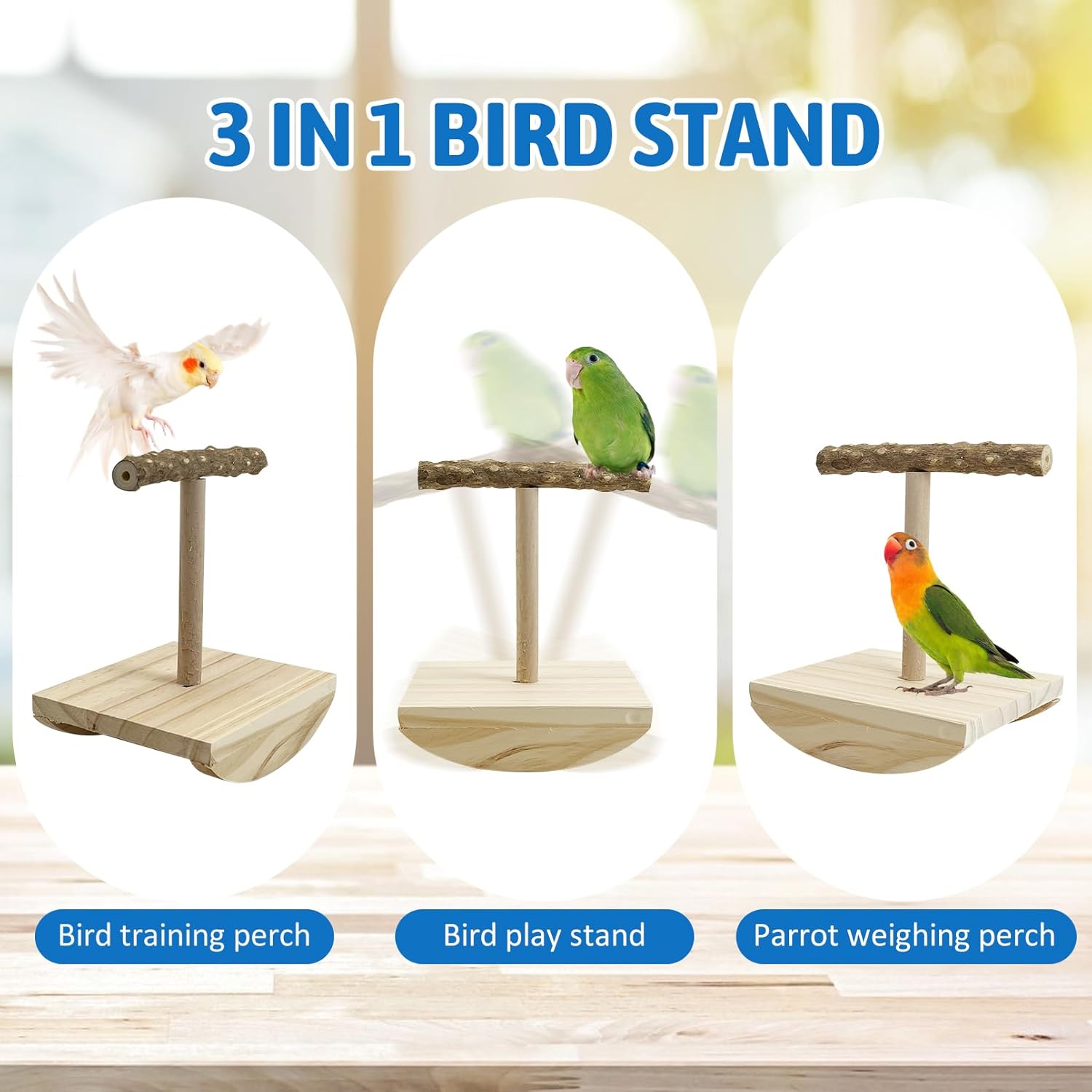 kathson Bird Training Stand, Parakeet Playground Bird Perch Stand Portable Tabletop Bird Perch Parrot Stand perches T Shaped Bird Play Stand for Parakeets Conures Lovebirds Cockatiels