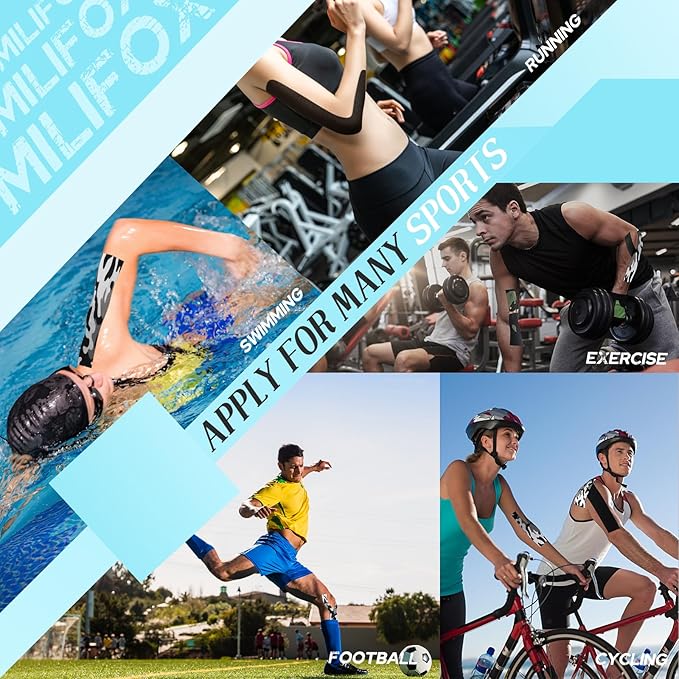 - Apply for Many Sports: The muscle tape for shoulder provides pain relief and prevents excessive stress on muscles and joints. Whether you're using kinesiotape, sport tape kinesiology, or rock tape, this versatile athlete tape is suitable for a wide range of activities, including thletics, swimming, mountain biking, running, fitness, tennis, football, basketball and other sports