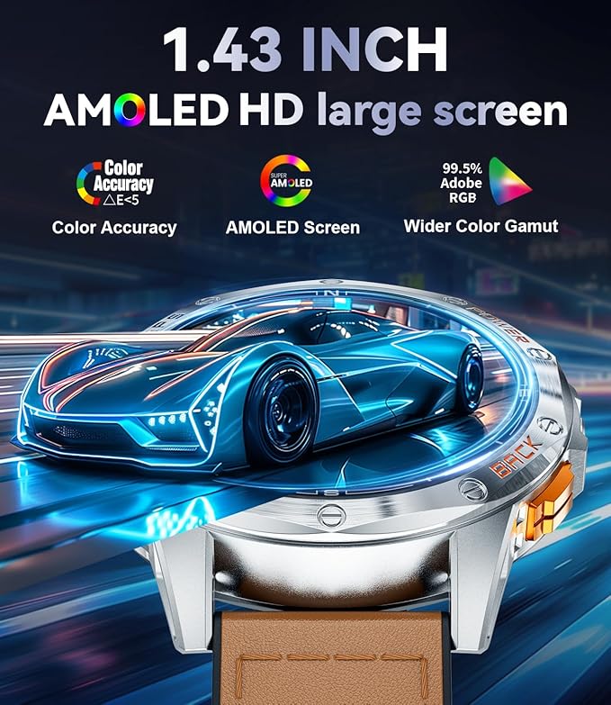 - 🔋【1.43'' AMOLED Screen & 600mAh Battery】 This amoled smart watch is equipped with 1.43'' AMOLED Always Dispaly touchscreen, 466*466 pixel, delivering excellent image quality and color representation. Whether in sunlight or at night, you can easily read information clearly. The round smart watch features highly sensitive touch responsiveness, ensuring quick reactions to every touch and enhancing the user experience. The lige smart watches men with 600 mAh battery that supports fast charging, it only takes 2.5 hours to fully charge, can last 5-7 days with regular use, standby time of up to 45 days, alleviating concerns about frequent recharging.