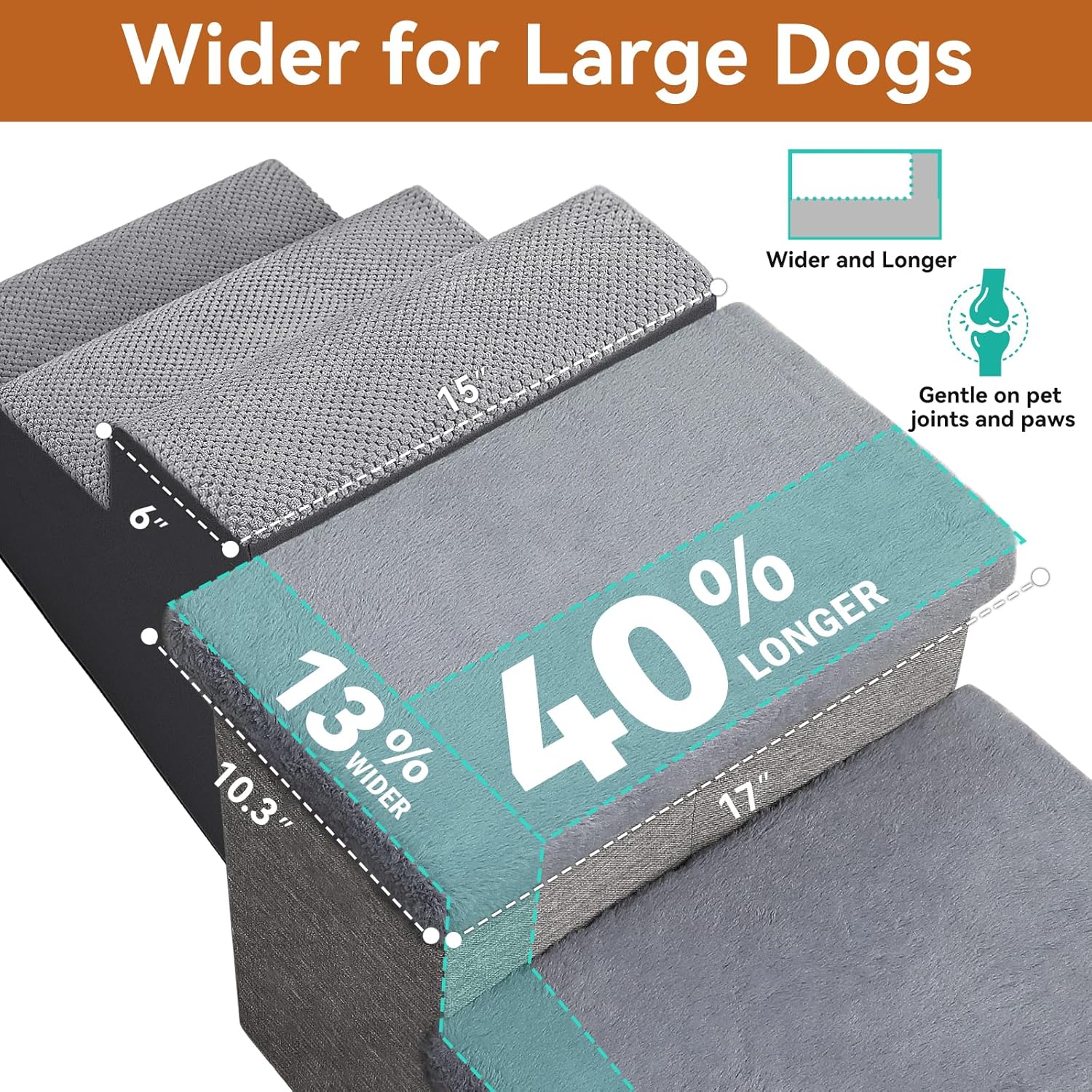 - HIGHER AND WIDER STEPS & HOME DECOR: Our extra-large Stairs size 31"D x17"W x17.7"H. Zerbuger sturdy dog stairs are perfect for helping your furry friends reach beds and sofas easily indoors, or climb to vehicles or SUV outdoors while traveling. Besides, its modern look can be an elegant décor in your house.