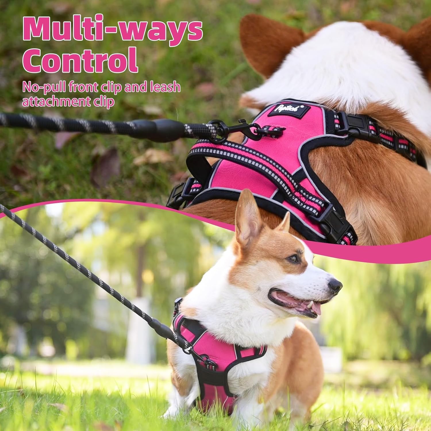 PUPTECK No Pull Dog Harness for Large, Adjustable Reflective Dog Harness with Handle Easy Control, Comfortable Soft Padded Pet Vest Harness for Extra Large Dogs, Fuschia XL