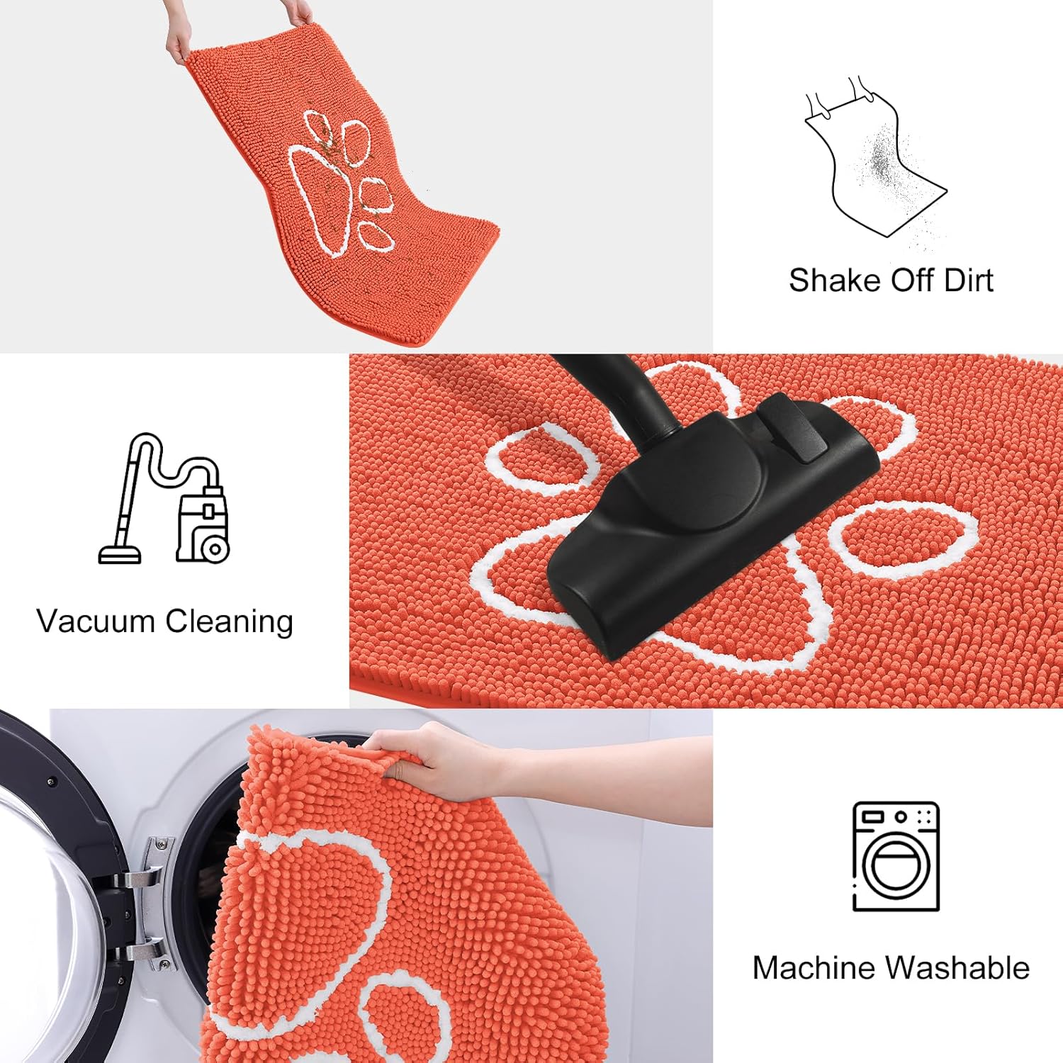 Smiry Dog Door Mat for Muddy Paws, Absorbent Dirt Trapper Non Slip Quick Dry Washable Chenille Mat for Mud Dogs, Entry Rug for Indoor and Outdoor (36x24 Inches, Coral)
