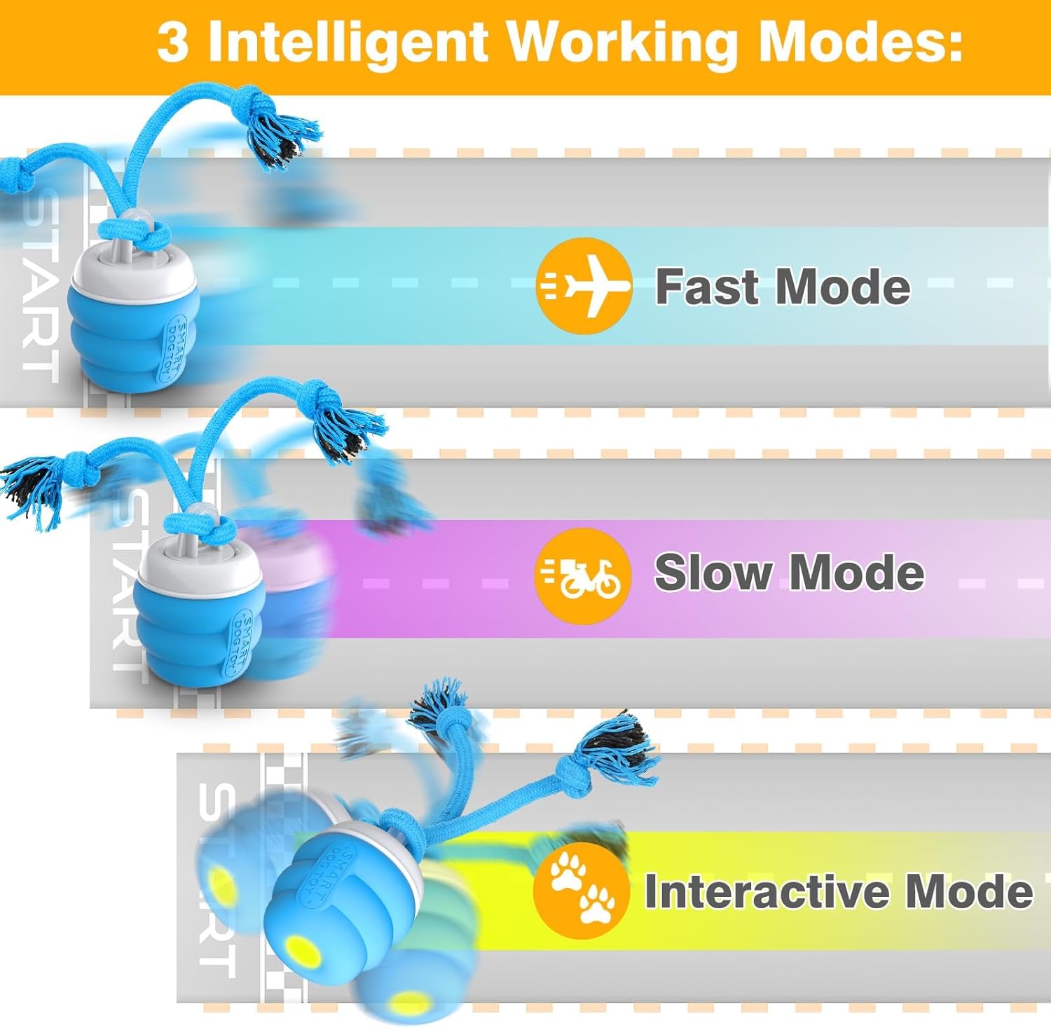 - [ADVANCED INTERACTIVE DOG BALL] - The interactive moving dog toy introduces a novel interactive experience with three intelligent modes: rapid rolling, automatic rest, and touch activation, simulating hunting games that awaken your dog's instincts. | This innovative active rolling ball for dogs provides physical and mental exercises for your dog, promoting self-entertainment and the ability to stay alone at home, granting you moments of tranquility.