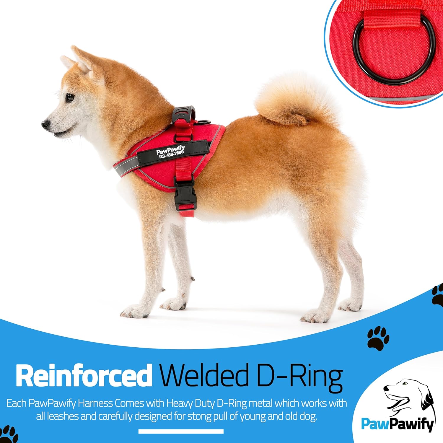 PawPawify Custom No Pull Dog Harness with Name and Phone Number, Heavy Duty Personalized Pet Vest to Prevent Tugging, Pulling, or Choking, Training and Walking (New Red, XL (60-85 LBS))