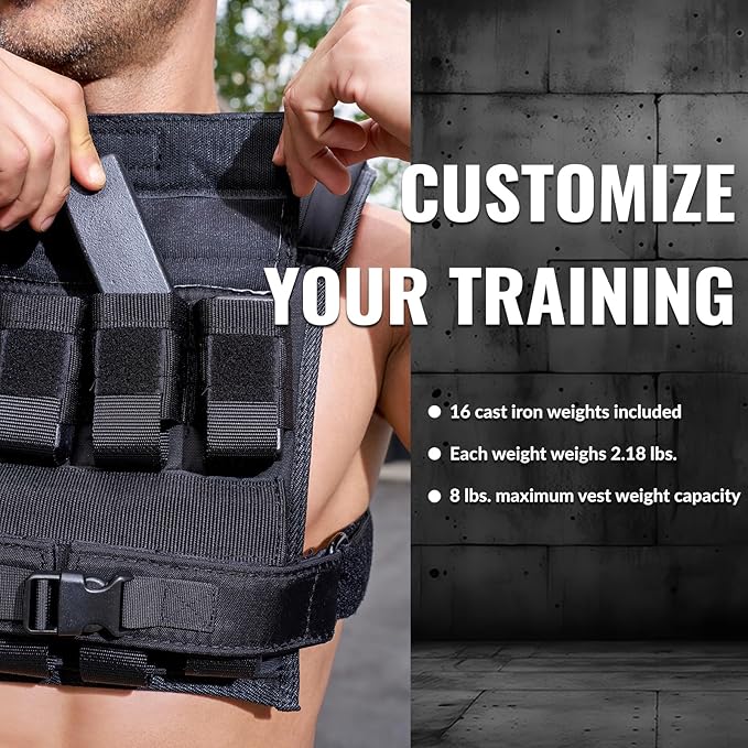 - Iron Weights - Our walking weight vest iron weights are evenly distributed for a lifetime of use. Keeping you focused on pushing the limits of your sport, each weight weighs approximately 2.18 lbs and can be removed and added in seconds.