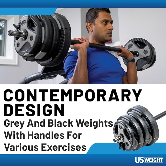 US Weight Barbell Weight Set for Home Gym with 55” padded Bar - Adjustable Weights for Exercise, Lifting, and to Build Muscle