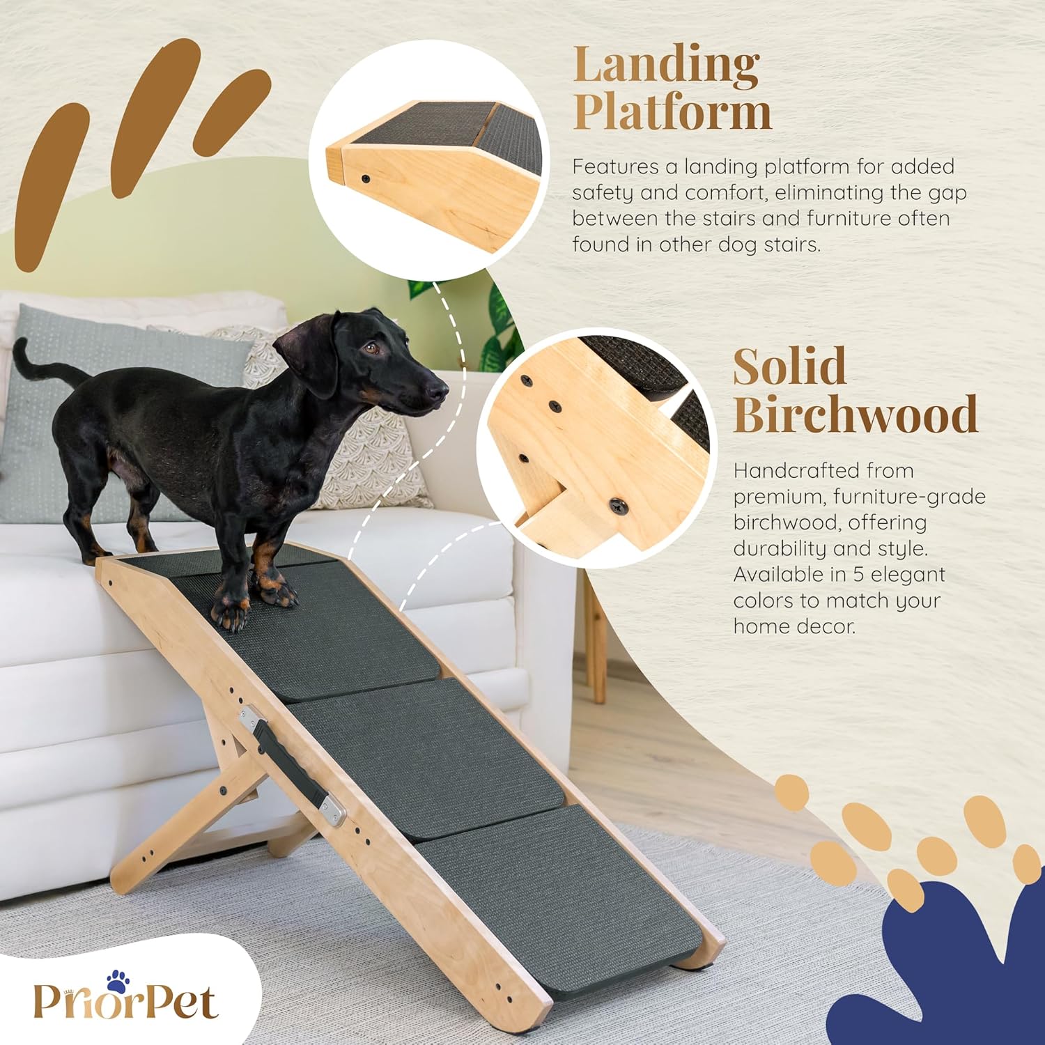 - SOLID BIRCHWOOD CONSTRUCTION WITH NATURAL FINISH: Crafted from premium solid birchwood, these pet steps are not only sturdy but also stylish, blending seamlessly into your home decor while providing reliable support for both small and large dogs.