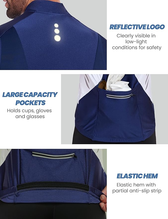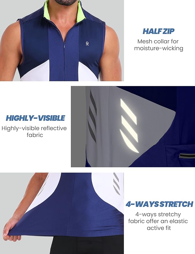 Little Donkey Andy Men's Half Zip Breathable Cycling Vests Reflective Sleeveless Jerseys Lightweight Bicycle Running