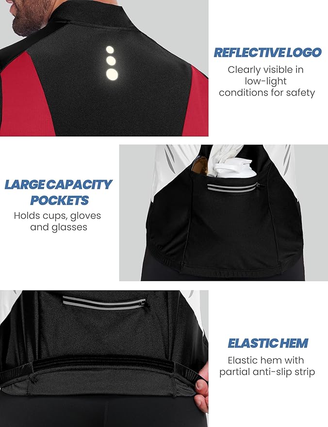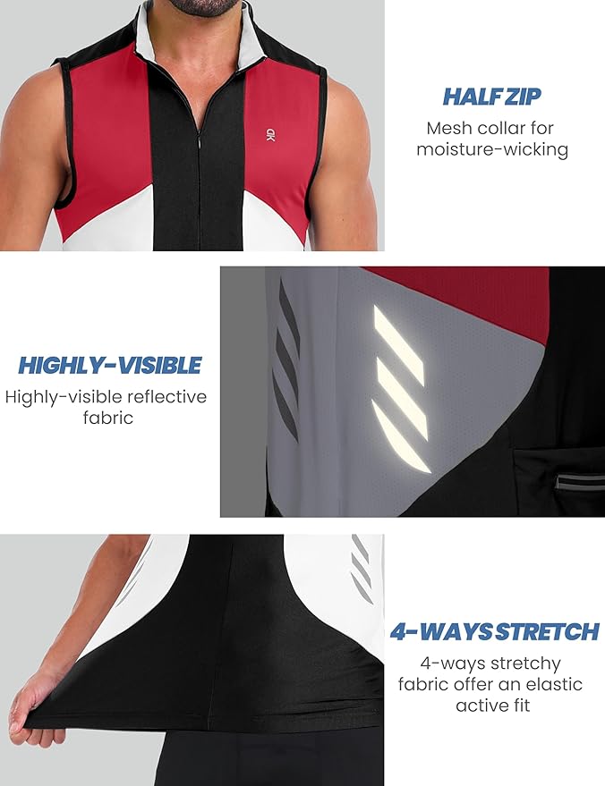 Little Donkey Andy Men's Half Zip Breathable Cycling Vests Reflective Sleeveless Jerseys Lightweight Bicycle Running