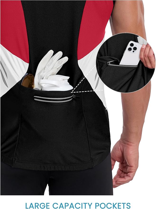 - UTILITY POCKETS: 3 open rear pockets and 1 zipper rear pockets to hold your items like cards, smartphone and hand towel when cycling or running