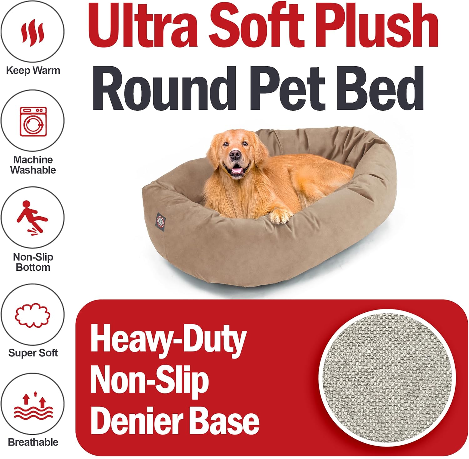 Majestic Pet 40 Inch Suede Shredded Memory Foam Mix Calming Large Dog Bed Washable 40 x 29 x 9 (Inch) - Cozy Soft Round Donut Dog Bed with Spine for Head Support - Pet Bed Stone