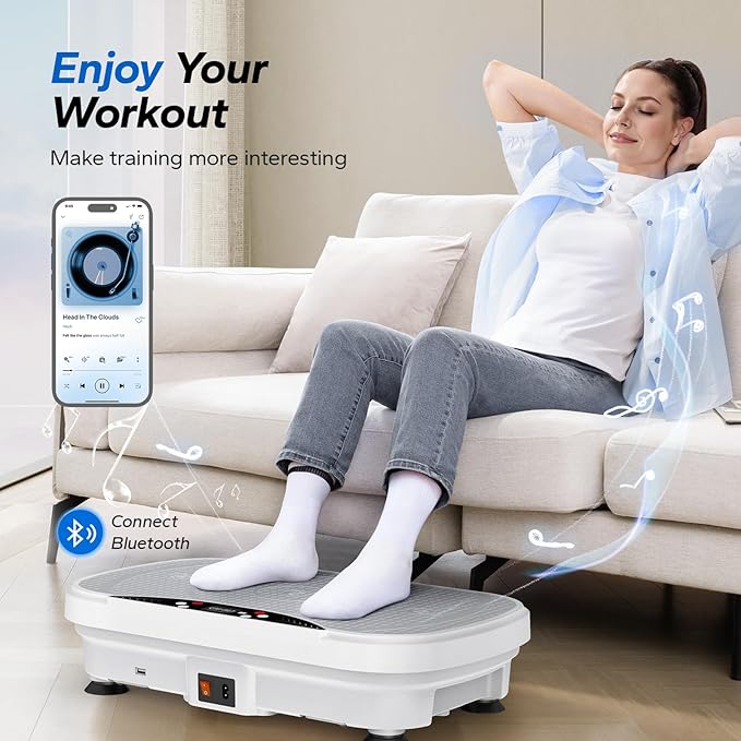 - Advanced Features for Your Convenience: Elevate your workout sessions with premium features designed to inspire and motivate. The vibration plate comes equipped with 2 pull rope to enhance upper-body exercises, an easy-to-use remote for seamless control, and a clear LED display for progress tracking. For added enjoyment, the built-in Bluetooth speaker lets you play your favorite music, transforming every workout into an engaging and energizing experience