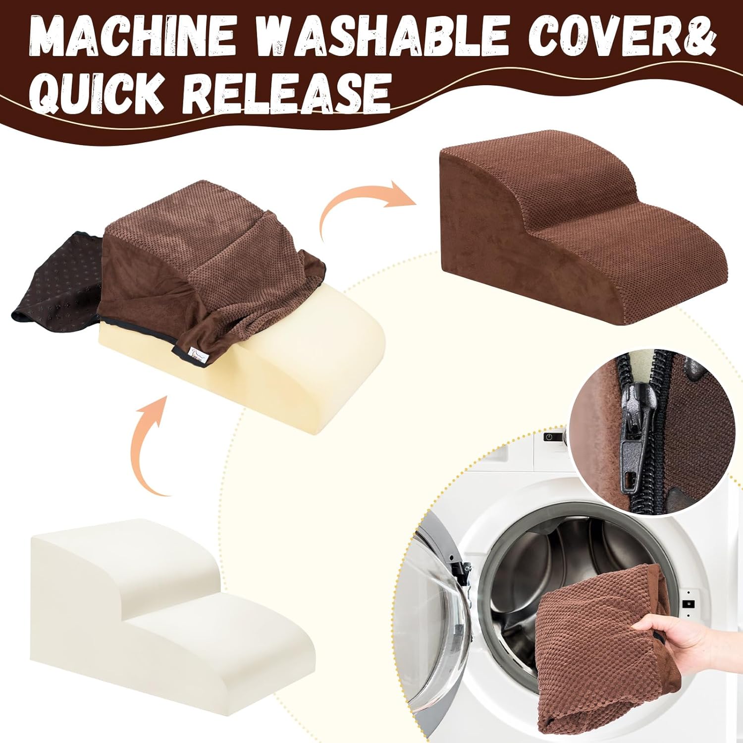 - Double Sided Anti Slip: The dog steps cover is made of corduroy with greater friction than other fabrics, which provides extra grip while in use, the bottom features nonslip rubber dots, preventing pets from sliding while climbing, providing pets with double safety protection