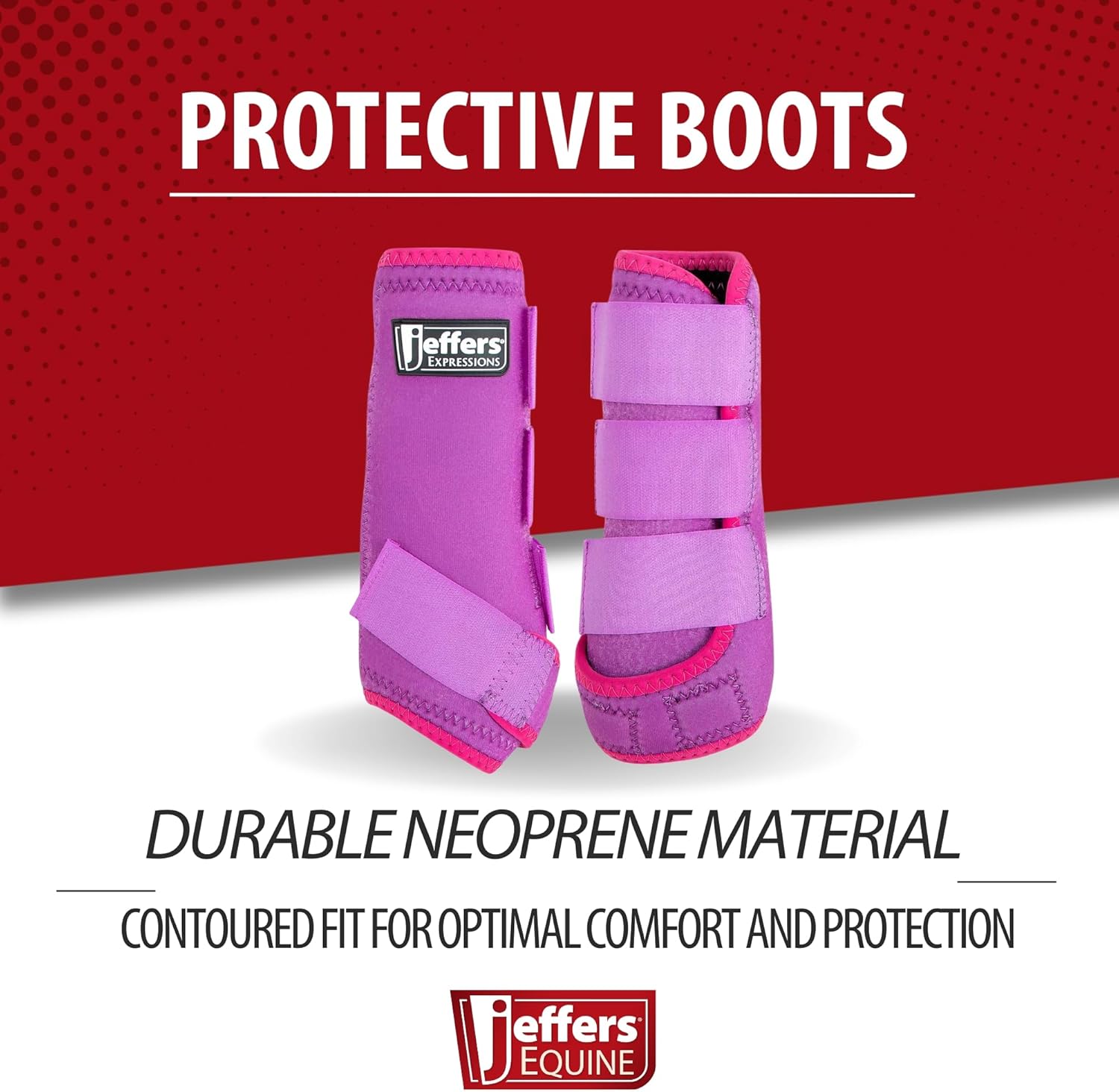 Jeffers Expression Neon Horse Boots 1 Pair - Purple & Pink, Breathable Neoprene, Secure Strap Closures, Durable Premium Protection for Jump Training & Trail Riding - Front & Hind, Medium Size