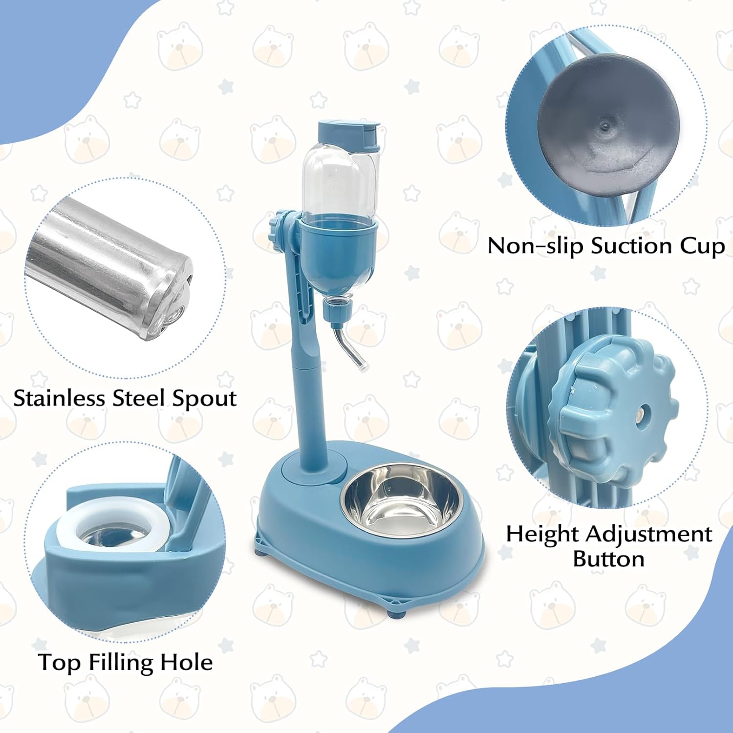 Fhiny Dog Water Feeder Bottle with Stand, Dispenser Automatic Water Food Bowl for Cage No-Drip Leak-Proof Adjustable Raised Pet Slow Water Bottle Dog Kennel Durable Drinker (Blue, 17oz)
