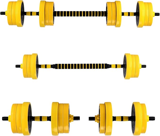 - Versatile Adjustable Dumbbell Set: The adjustable dumbbell weights can be used as dumbbells and barbells. The dumbbells can be 5-44 lbs, and the barbell weights can be 11-44 lbs.