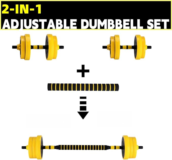 - Comfortable Foam Bar Connector: The connector is made of soft foam, which can protect your shoulders well when you use it as a barbell. The dumbbells are coated with high-quality PE, which is harmless to your body. The dumbbell weights are filled with different proportions of iron sand, which is sturdy .