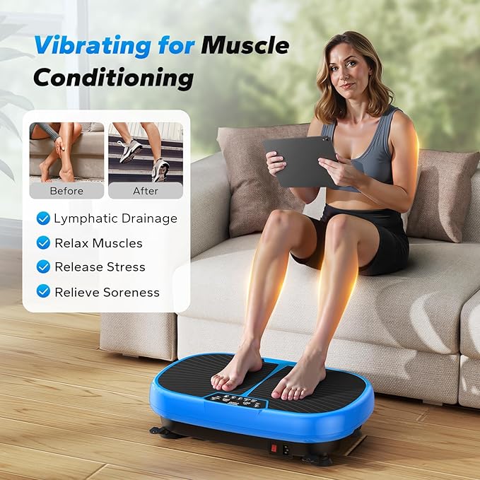 - [Promote Blood Circulation & Strengthen Muscles] Vibration plates directly stimulate muscle contraction and relaxation by simulating nerve signals sent by the brain, thereby achieving the effect of exercise. In this way, muscle strength and endurance can be enhanced. Appropriate stimulation can help improve local or systemic blood circulation, which is conducive to accelerating the metabolic process and the discharge of waste in the body.