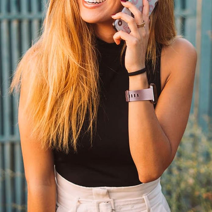 - Available in multiple colors and two sizes for Fitbit Versa 2 bands / Fitbit Versa bands / Fitbit Versa Lite bands women men, freely adjustable stainless steel buckle holds Versa sturdily. Each color is seemed like a brand new watch. Small Size fits for 5.5" - 7.1" (140mm-178mm) wrist. Large Size fits for 7.1" -8.7"(178mm-220mm) wrist.