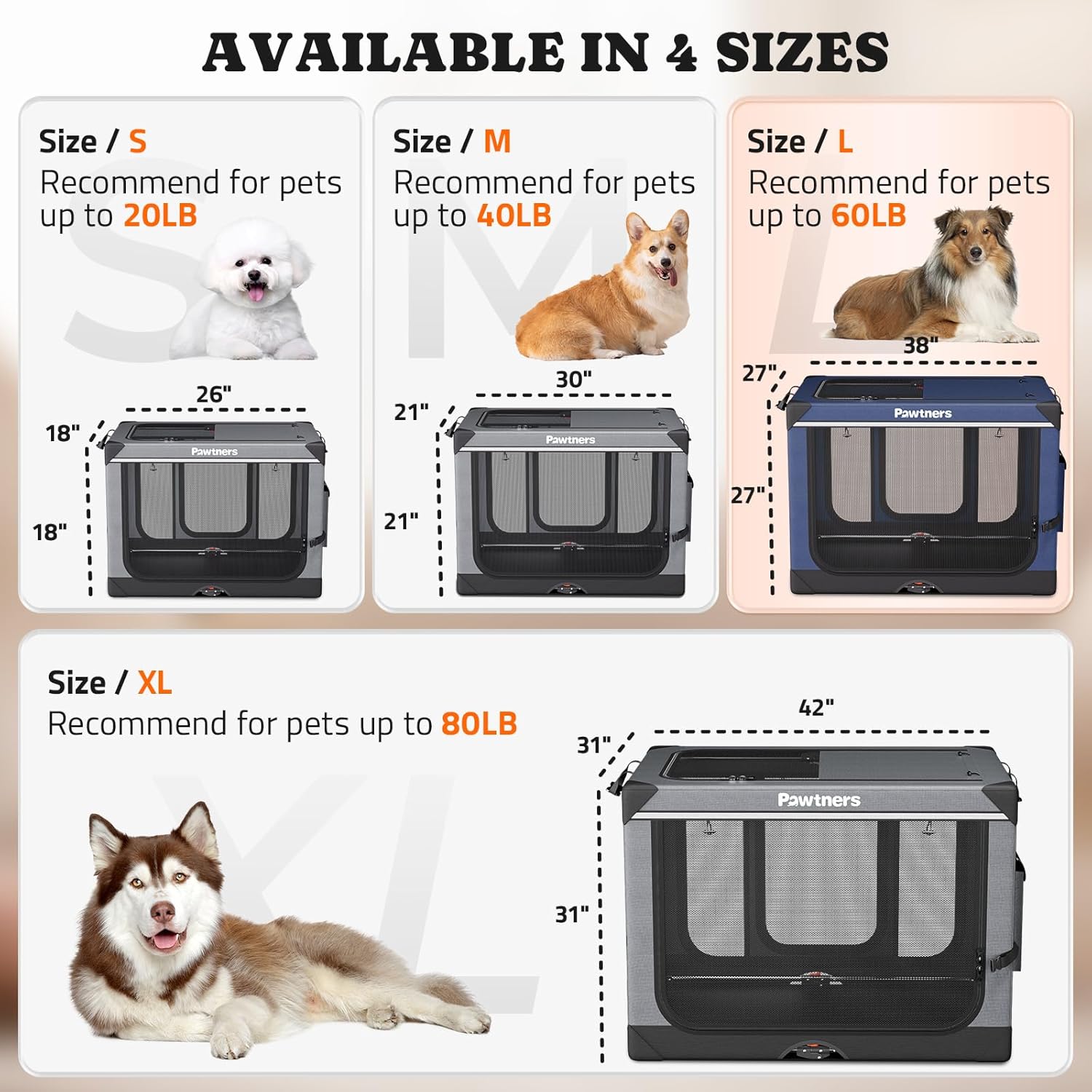 - Soft Material for Protection: Due to the soft and gentle fabric, Pawtners dog kennel provides a safe and cozy environment for all sized dogs. Perfect soft sided dog crate for pets that appreciate a comfortable space