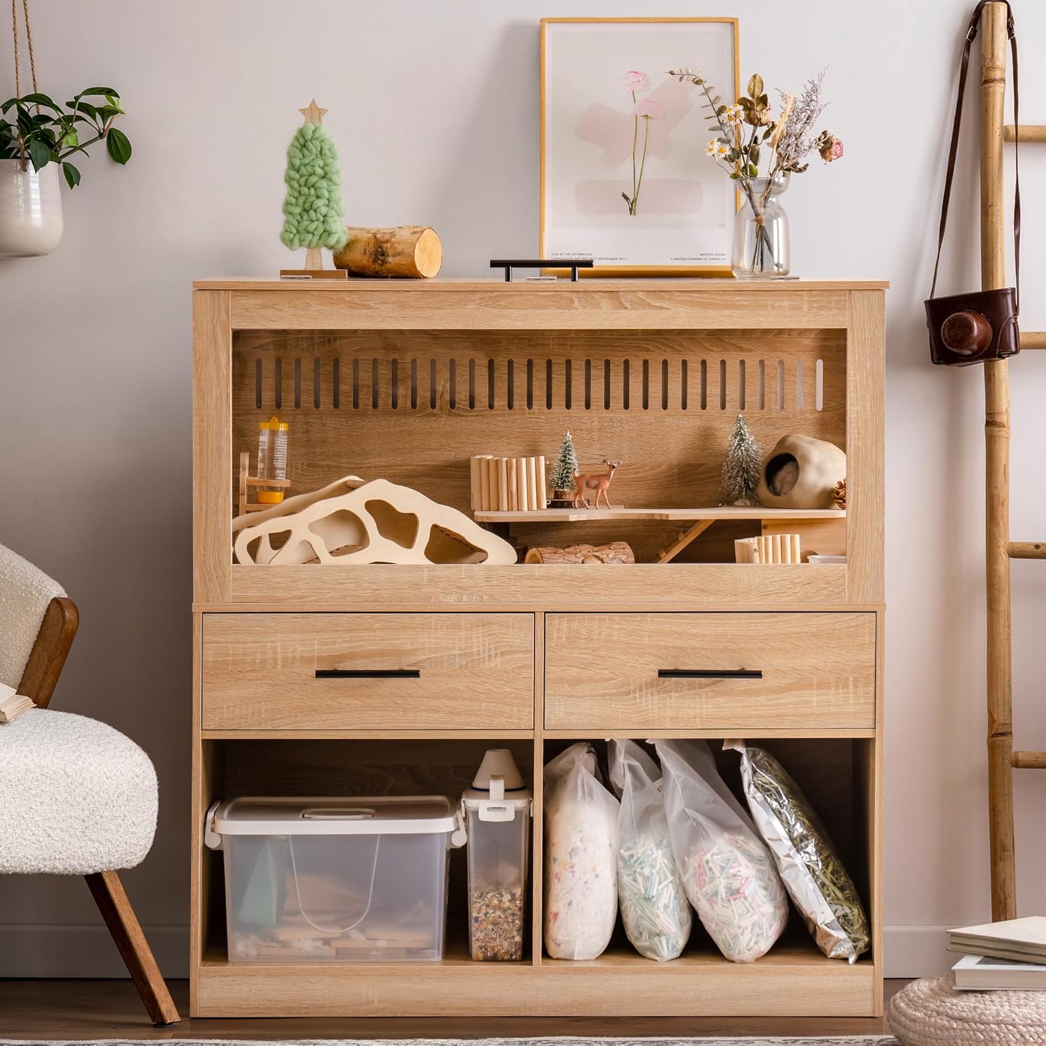 - 【Durable Materials】Constructed from premium wood and acrylic, this habitat is sturdy, stable, and safe for your small pets. Its robust structure is designed to withstand daily use, making it a long-lasting addition to your home.