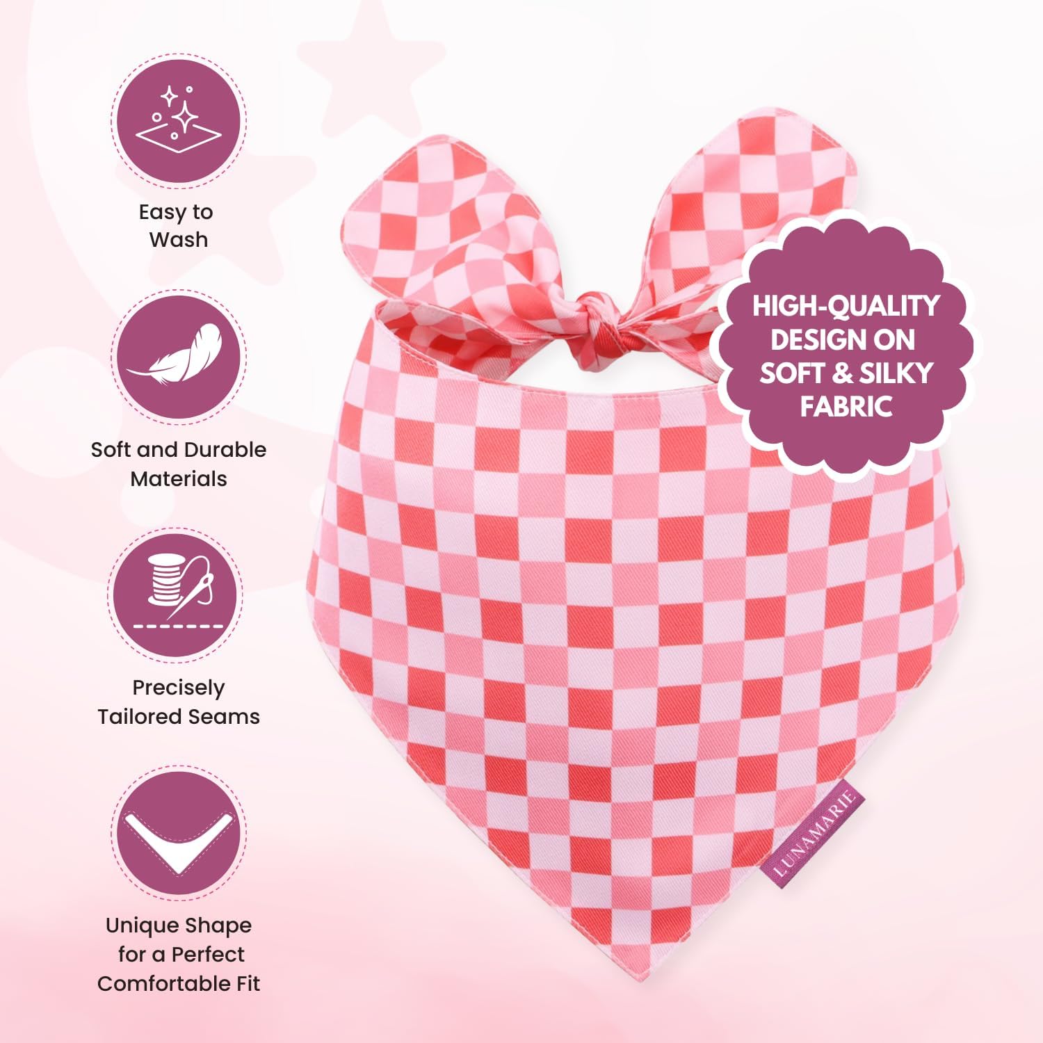 LunaMarie - Luxury Pet Birthday Bandanas -Premium & Silky Poly Fabric | 100% Handmade | Custom Shape Dual Layered (Rebel, Small)