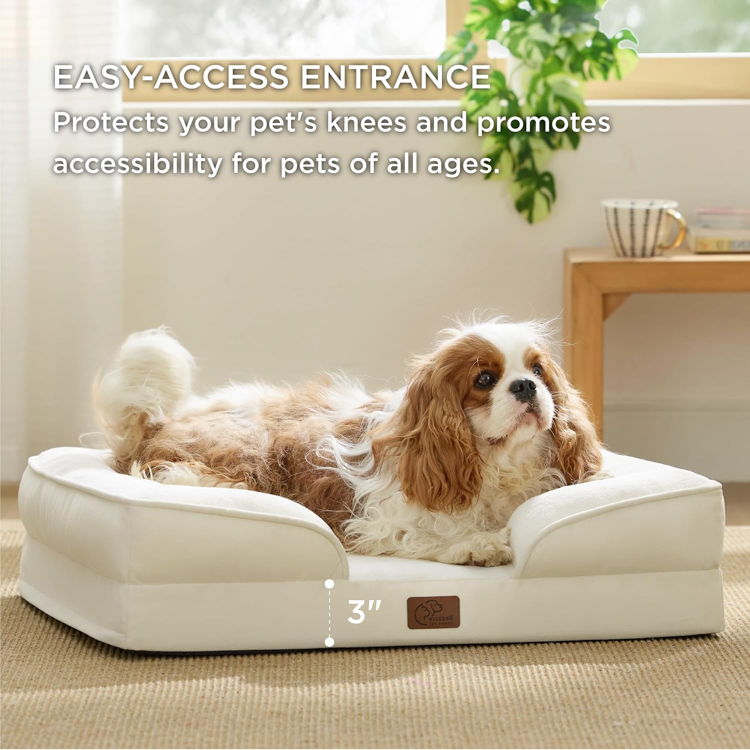 Bedsure Orthopedic Dog Bed Medium Size Dogs - Washable Medium Dog Cat Bed Waterproof, Comfort Pet Couch Sofa with Washable Removable Cover, Pets Bed with Nonskid Bottom, Ivory, 28"
