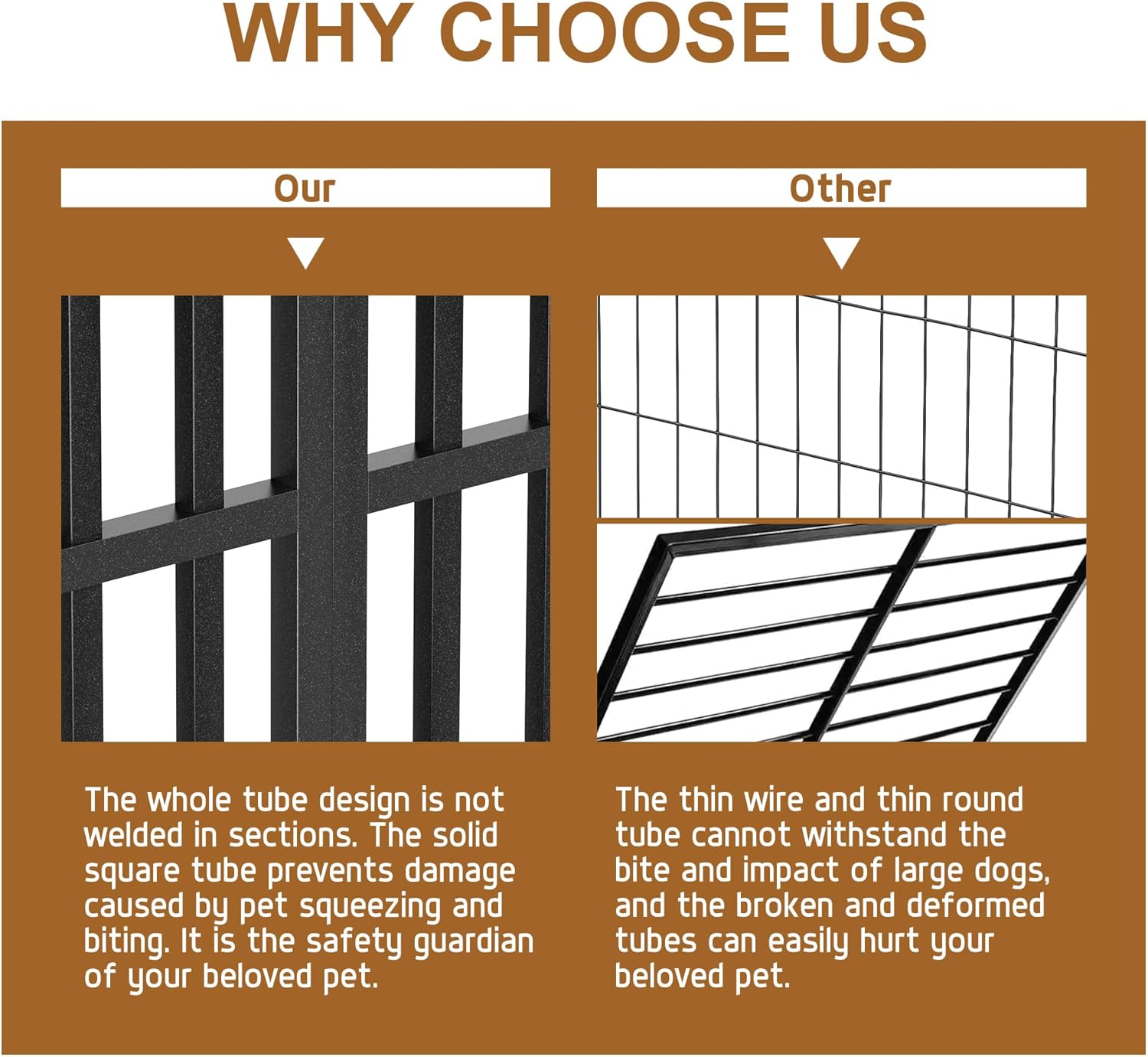 - Premium Materials: Constructed from 20-gauge steel and reinforced with 0.6-inch diameter steel tubes, this 37-inch dog crate offers significantly greater strength and durability compared to traditional wire cages. It provides a secure environment for even the most robust and powerful dogs.