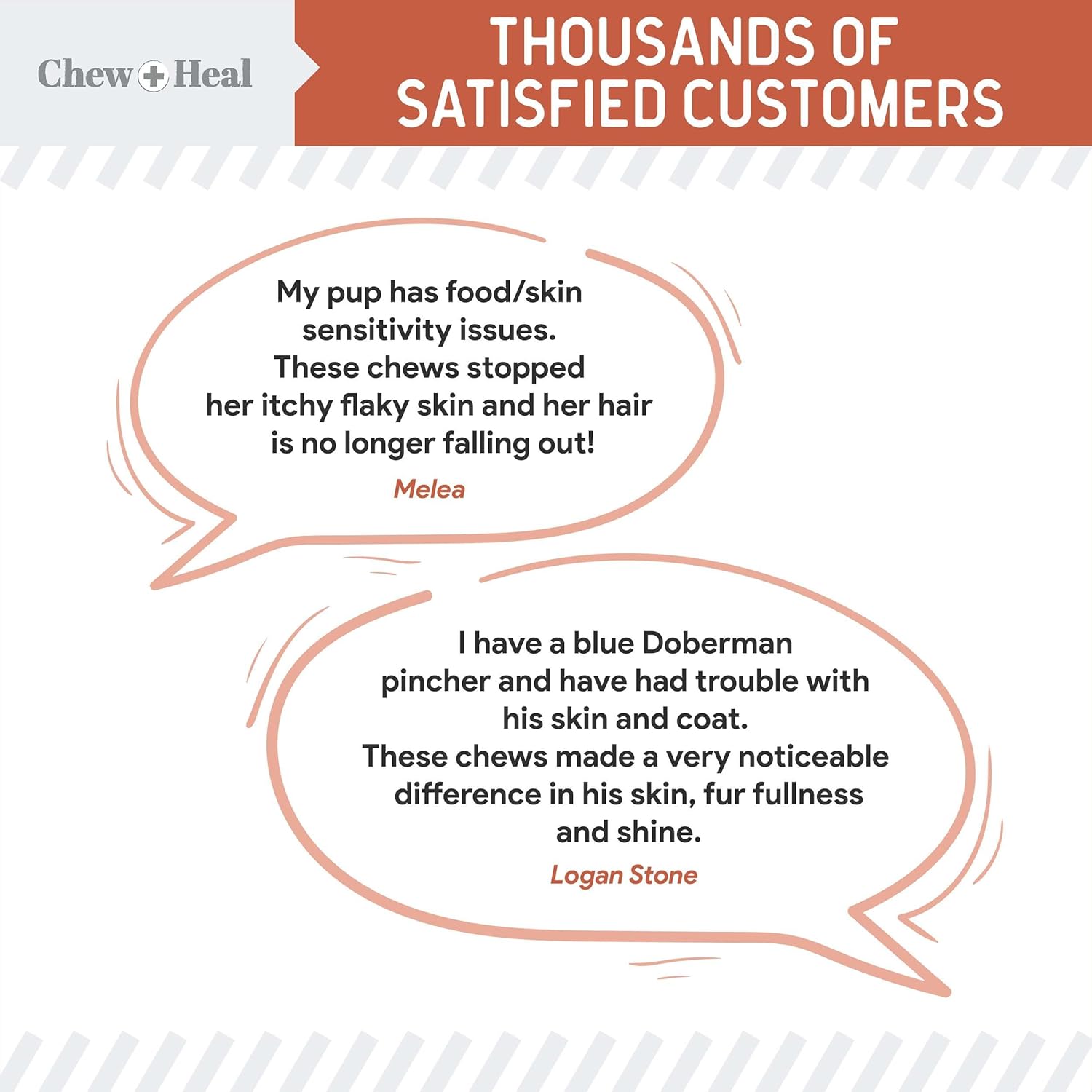 - PREVENTS SKIN ALLERGIES: This anti itch for dogs not only softens the skin, it gives it a glossy shine and helps prevent allergic reactions. This reduces dandruff and itchy skin, helping make your dog feel more comfortable in addition to being healthier! Say goodbye to greasy or dirty coats that have a unpleasant oily smell. These dog bites help kick-start the body’s natural processes to improve fur health.