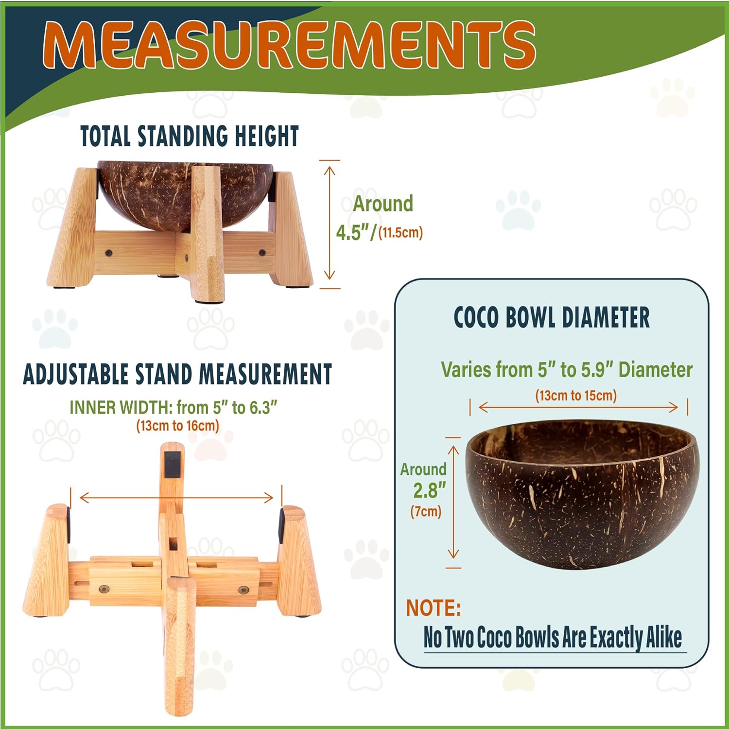 Raised Dog Bowl for Small Dog - Elevated, Ants-Off Stand, Real Coco Bowl, Height 5-inch, 33-oz Dish Capacity - Coconut/Bamboo Natural Calming Effect