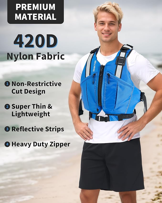 Owntop Swim Vest for Adults | Unrestricted Arm Movement | Extra-Large Pockets | Super-Thin | Kayak, Boating, Fishing