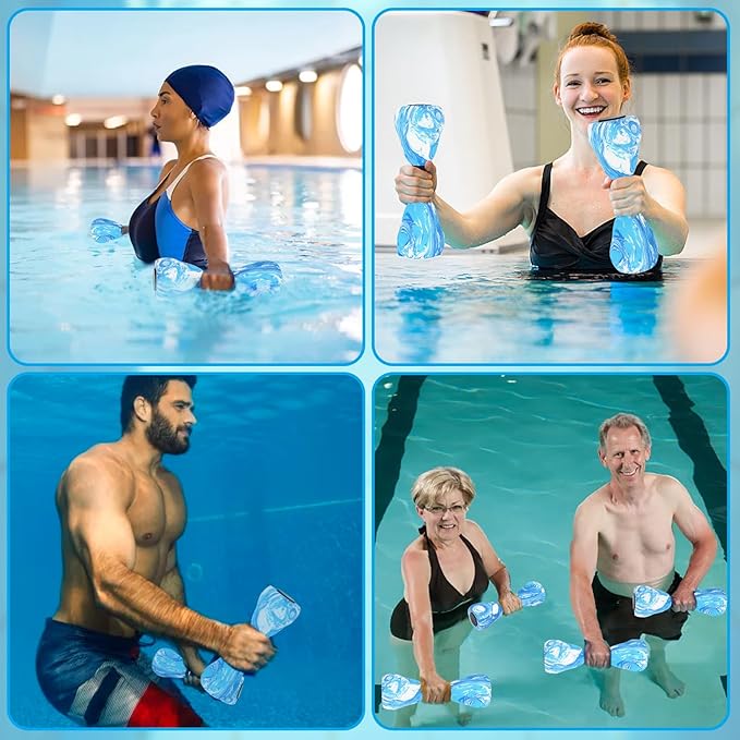 - Wide Application Pool Weights Dumbbells Set: From swimming classes, water physical therapy, pool sports, underwater fitness to water aerobics, the water aerobics weights dumbbells accessories have limitless uses. Plus, the aqua dumbbells are perfect for water resistance exercises to build upper body strength and strengthen muscles.