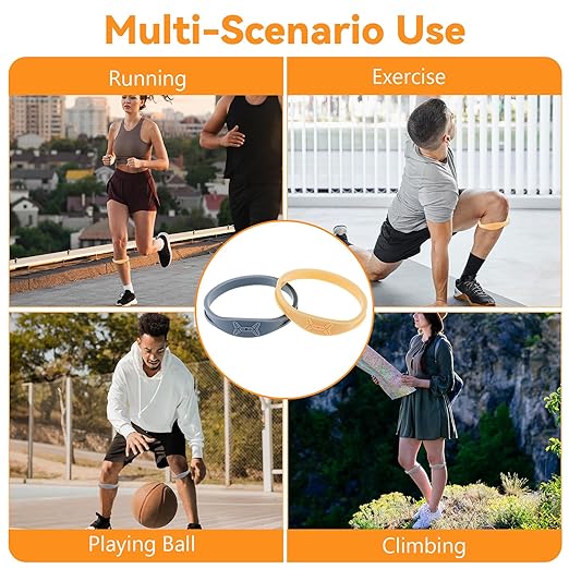 - 【What's in the Pack】: The sixth generation upgraded patella bands set includes 4 one-size-fits-all knee brace straps (no distinction between left or right), 2 in skin color and 2 in gray, along with a convenient carrying pouch, making it easy to change them anytime (Note: Limiting the wearing time should be strictly controlled to avoid over-reliance)