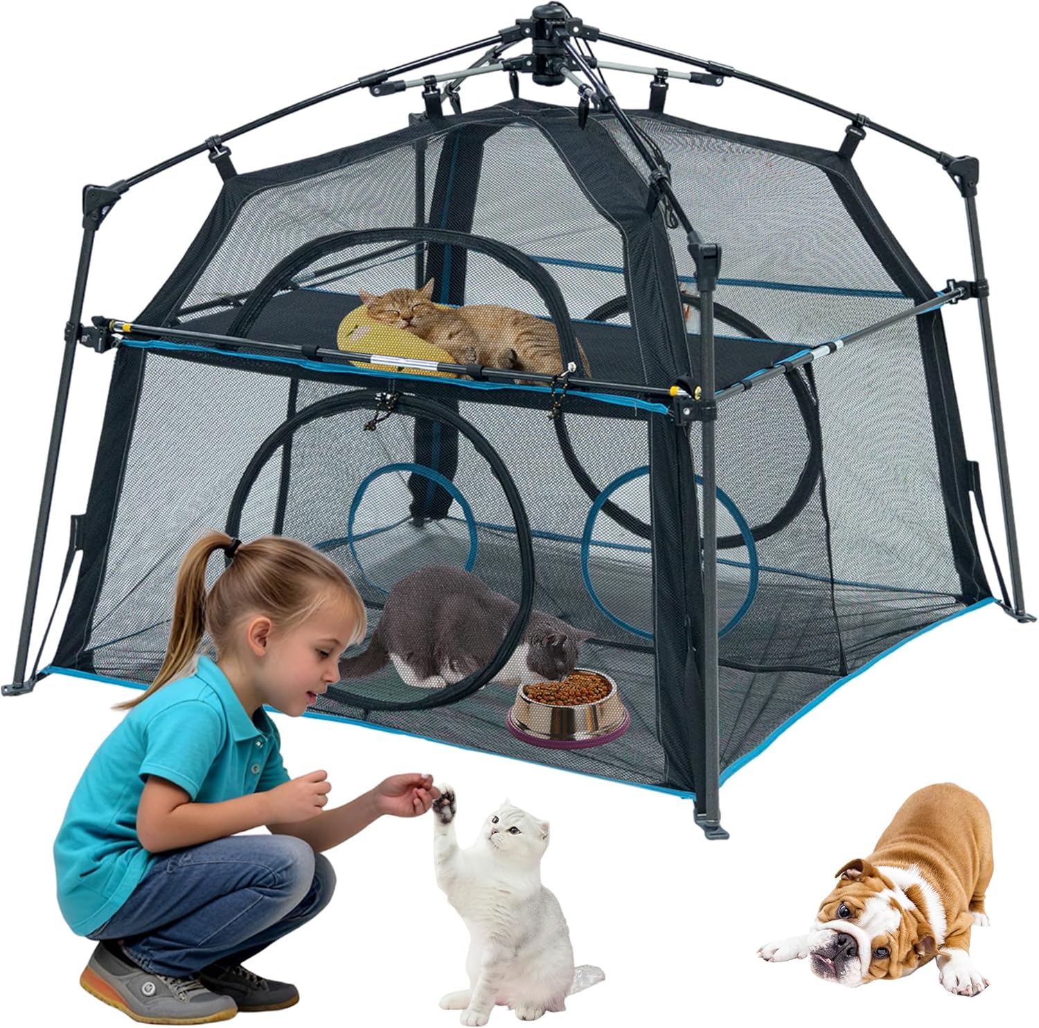 - Looking for a gift for your furry friend? Look no further than this 2 Tier catio! With breathable mesh,360-degree view for your pets to explore.Keep your cats or small animals close to nature and away from bugs and predators.Perfect for your cats.