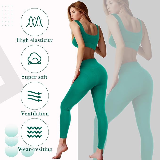 • Stretchy Material: yoga workout set is made from lightweight ribbed fabric, breathable and comfortable; The material designed to wick sweat away from your body, ensuring you stay dry and comfortable throughout your yoga session or Pilates class