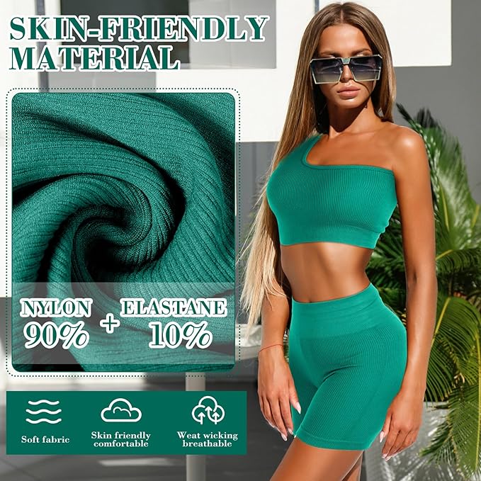• Pilates Outfit Set: women 4 piece workout sets include 1pcs scoop neck sports bra, 1pcs one shoulder sport top, 1pcs ribbed shorts and 1pcs women leggings, stylish and practical garments designed to bring comfort and functionality to your workouts