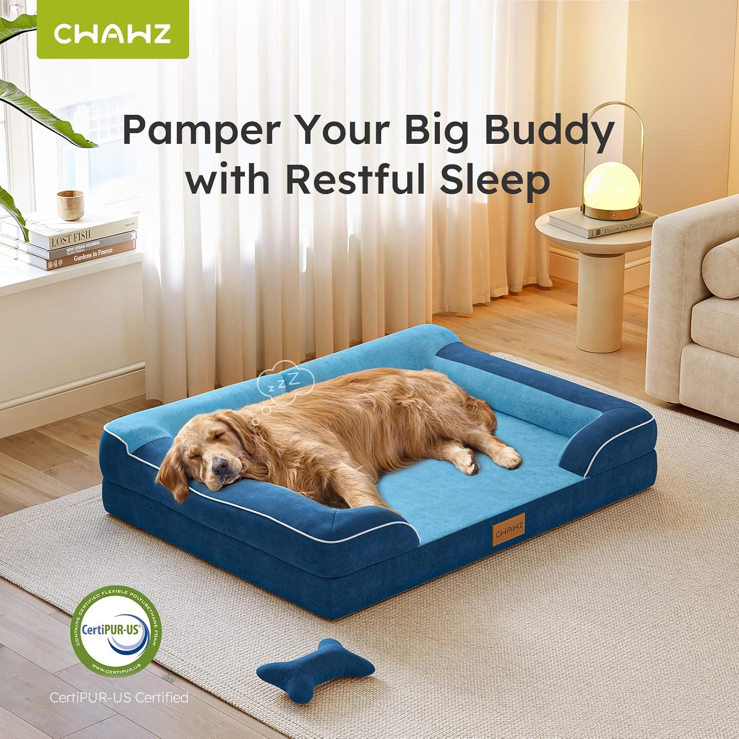 - Orthopedic Support:CWAWZ's big dog bed is filled with a 4" thick layer of high density orthopedic foam to cushion dog's joints and provide optimal support as they sleep, especially suitable for older dogs with anxiety and large dogs with arthritis