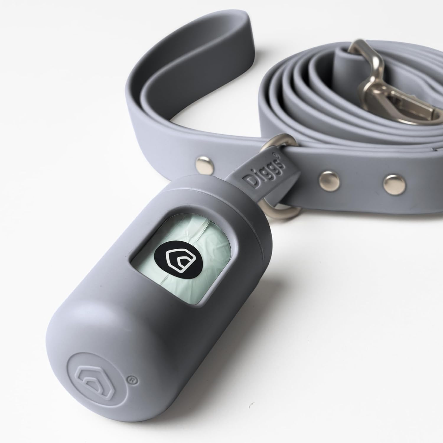 DIGGS Dog Poop Bag Dispenser for Leash - Premium Dog Waste Bag Holder with Easy One-Hand Dispensing (Grey)