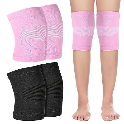 2 Pairs Kids Knee Sleeve, Knee Brace, Youth Knee Compression Sleeve Child Knee Pads Children Knee Support Boys & Girls for Volleyball Basketball Gymnastics Sports(Pink,Black)