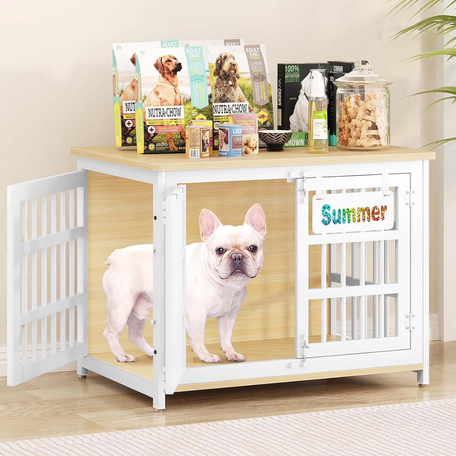 EasyCom 33" Dog Crate Furniture with Name Tag, Heavy Duty Dog Kennel Indoor for Medium and Small Dogs, Double-Doors Sturdy Metal Dog Cage, Decorate House as TV Stand, End Table, Bedside Table