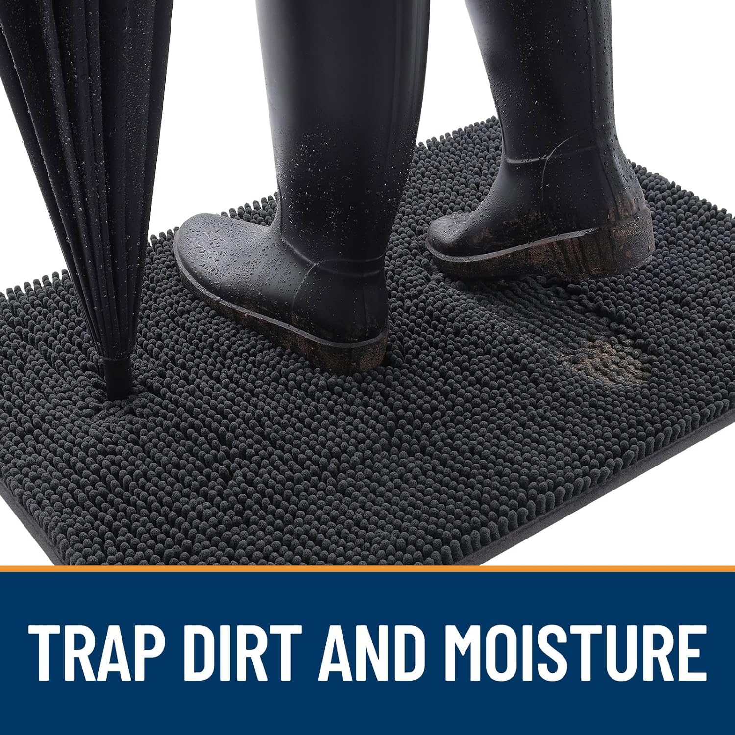OLANLY Dog Door Mat for Muddy Paws 40x24, Absorbs Moisture and Dirt, Absorbent Non-Slip Washable Doormat, Quick Dry Chenille Mud Mat for Dogs, Entry Indoor Entryway Carpet for Inside Floor, Dark Grey