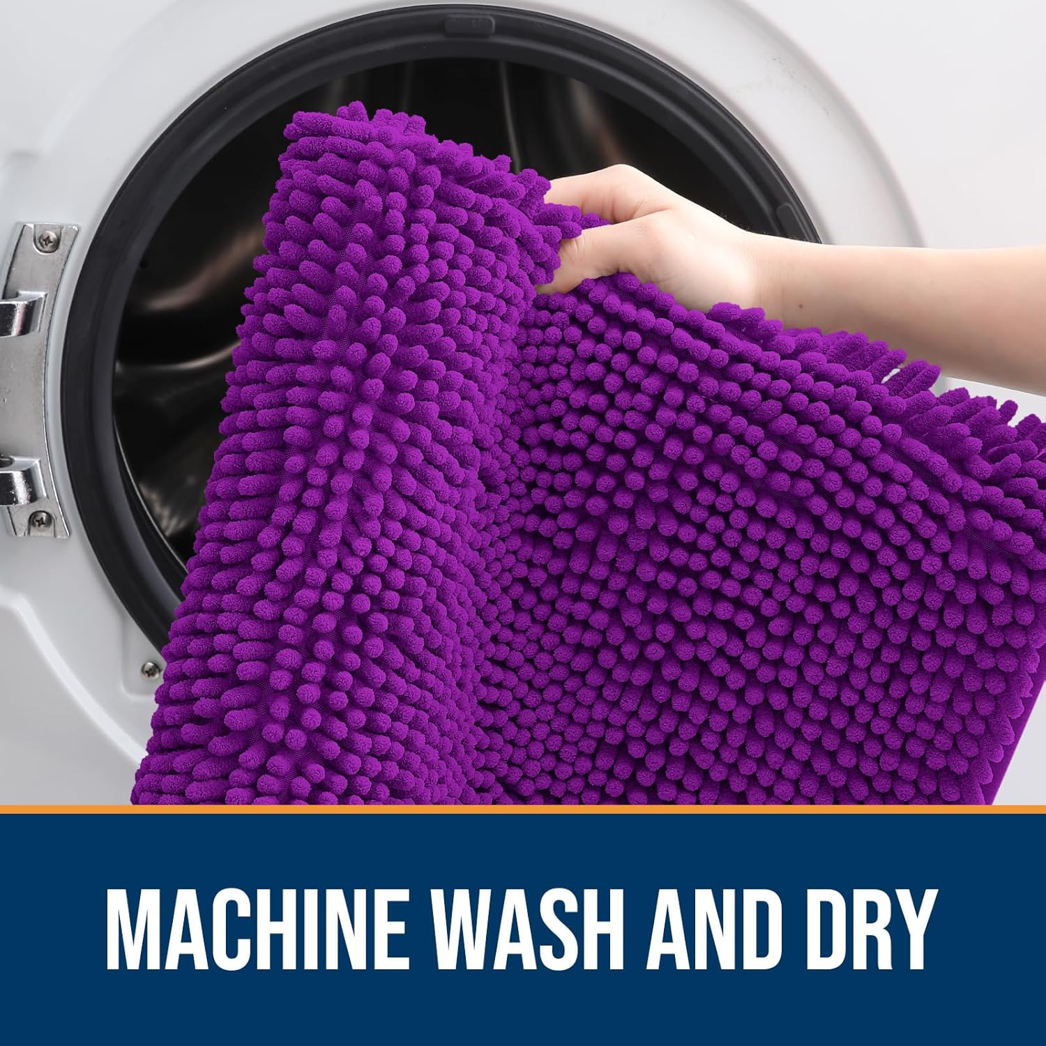 OLANLY Dog Door Mat for Muddy Paws 30x20, Absorbs Moisture and Dirt, Absorbent Non-Slip Washable Doormat, Quick Dry Chenille Mud Mat for Dogs, Entry Indoor Entryway Carpet for Inside Floor, Purple
