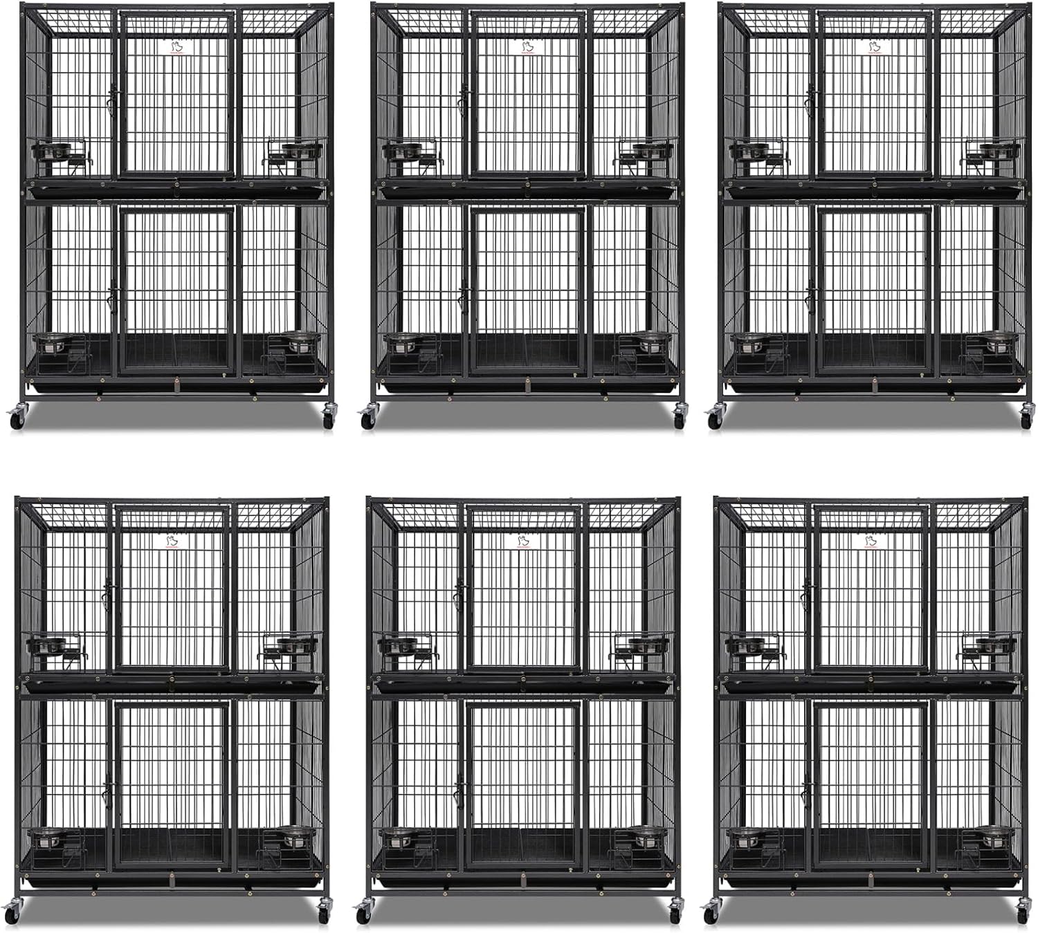 - Order includes: 6 Set x ( Two tiers Cages, 4x stainless bowls, 4x Casters and 2x Plastic Trays)