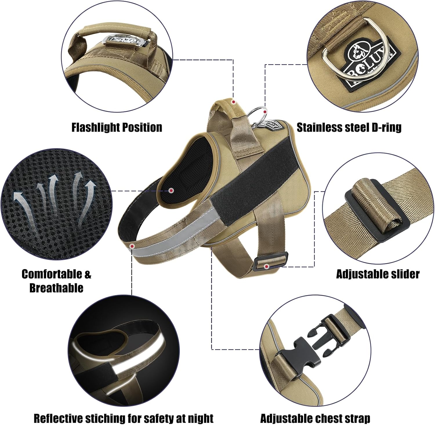Bolux Dog Harness, No-Pull Reflective Dog Vest, Breathable Adjustable Pet Harness with Handle for Outdoor Walking - No More Pulling, Tugging or Choking