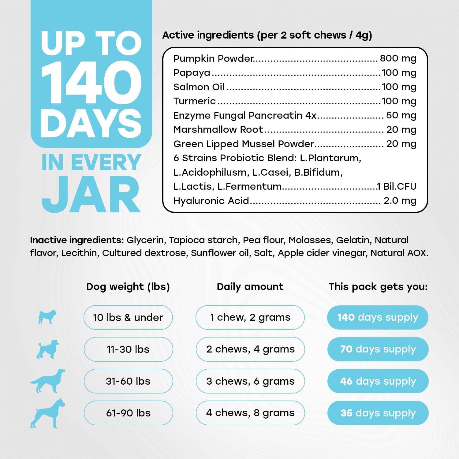 - PhD-Endorsed Digestive Support – Give your pup the expert-approved probiotic boost they deserve! Packed with digestive enzymes, prebiotics, and probiotics, these soft chews promote gut health, regularity, and balanced digestion in all breeds and sizes.