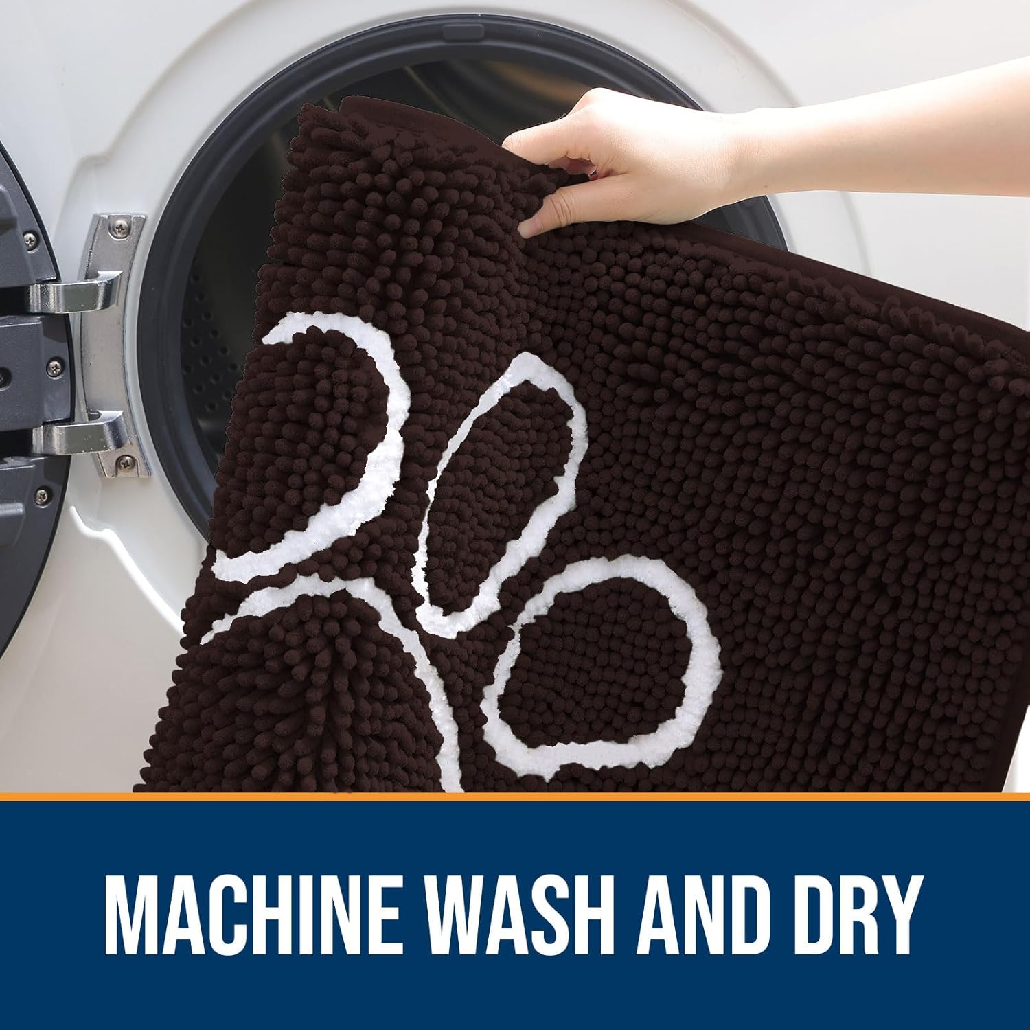OLANLY Door Mat for Muddy Dog Paws 24x16, Ultra Absorbent Chenille Mud Doormat with Paw Print Design, Non-Slip Washable Doormat for Indoor Entryway, Quick-Dry Pet Bed Mats for Dirty Dogs, Brown