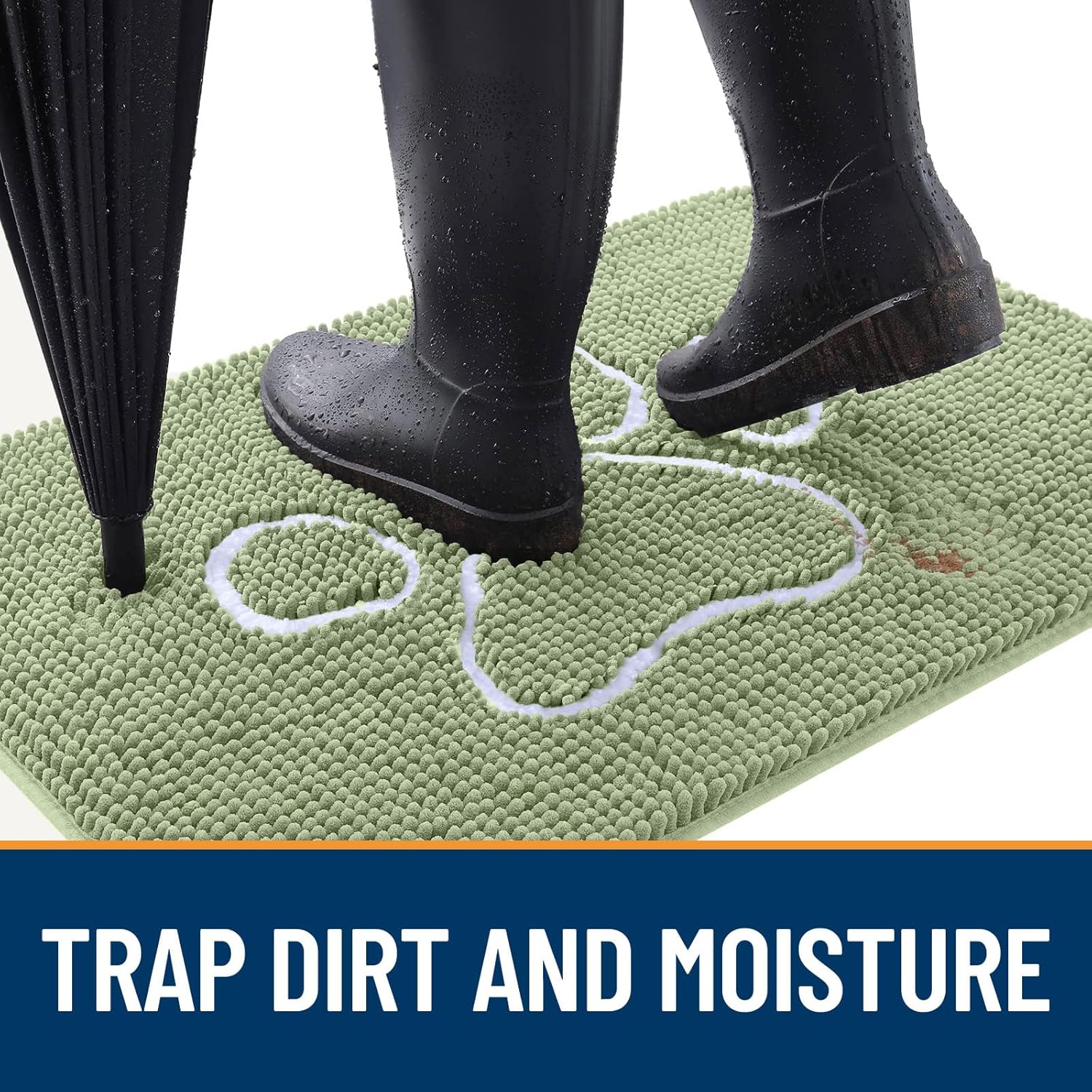 - [ABSORBS MOISTURE AND DIRT] OLANLY indoor dog mat for muddy paws is crafted to efficiently remove dirt and swiftly absorb moisture. With our doormat, your shoes will be instantly clear of any water, dust, grit, muck, sand, sleet, grass, slush, rain, or snow upon entering the house. It's an excellent choice for use as an entryway door mat, a welcoming door mat, or a dirt-trapping mat.