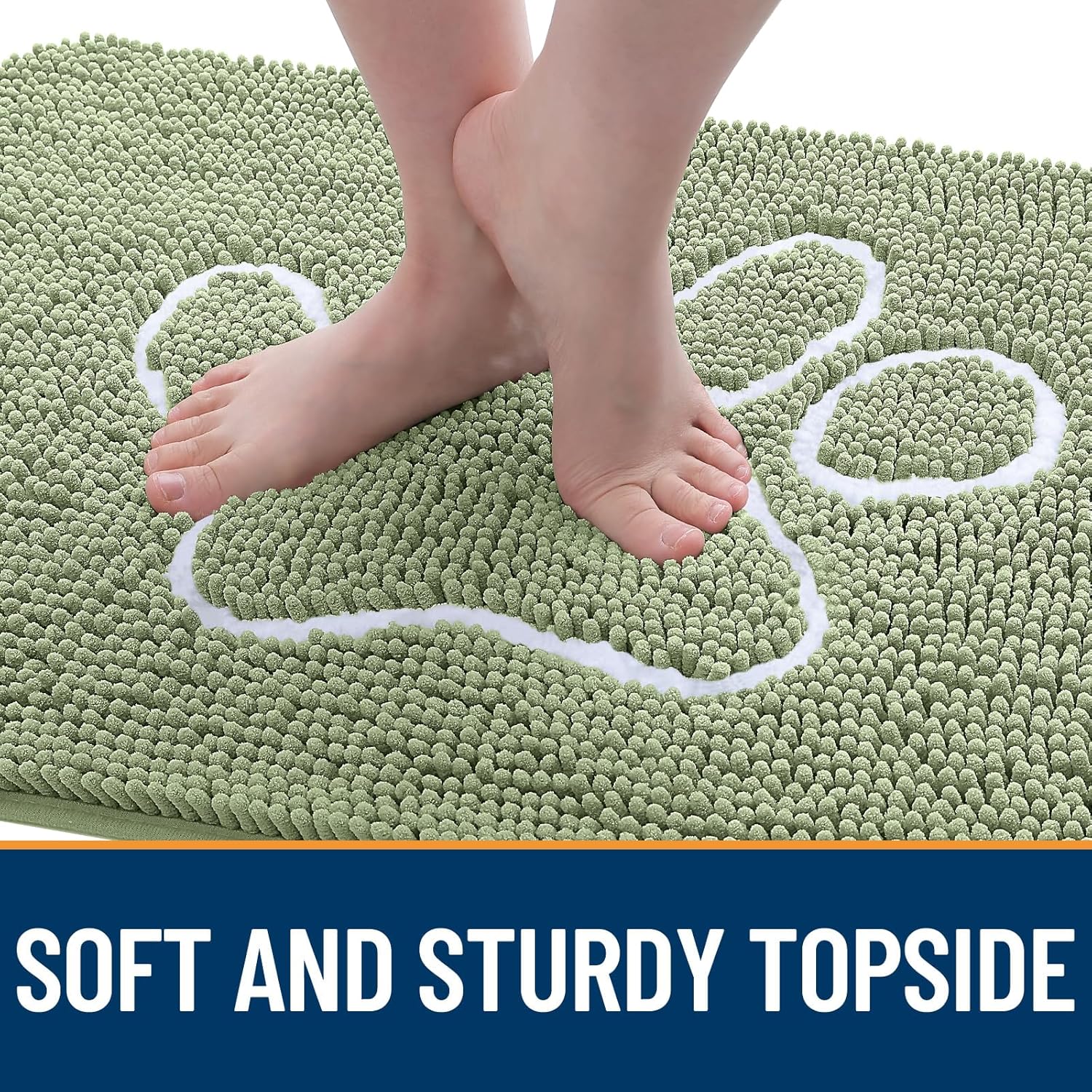 OLANLY Door Mat for Muddy Dog Paws 59x35, Ultra Absorbent Chenille Mud Doormat with Paw Print Design, Non-Slip Washable Doormat for Indoor Entryway, Quick-Dry Pet Bed Mats for Dirty Dogs, Sage Green