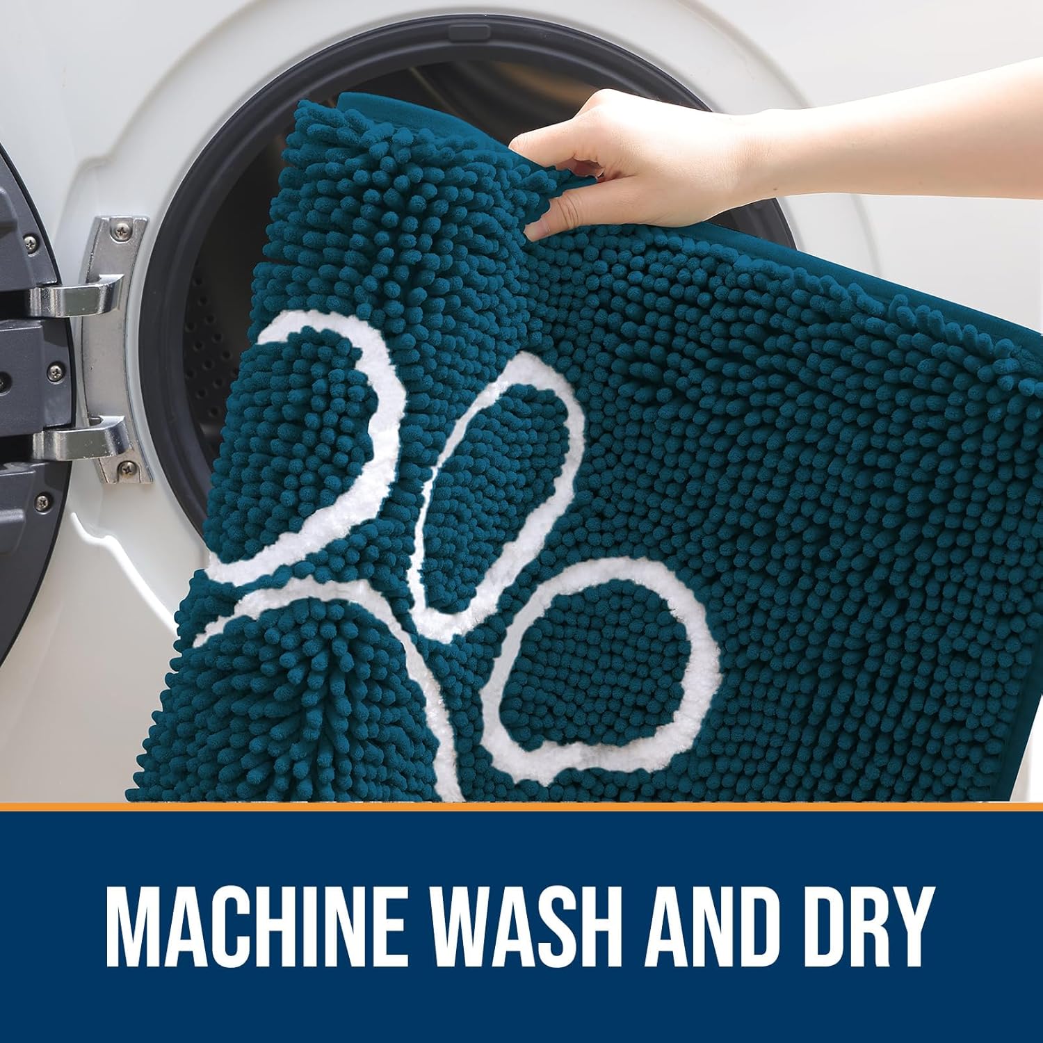 OLANLY Door Mat for Muddy Dog Paws 70x24, Absorbent Chenille Mud Doormat with Paw Print Design, Non-Slip Washable Doormat for Indoor Entryway, Quick-Dry Pet Bed Mats for Dirty Dogs, Atlantic Blue