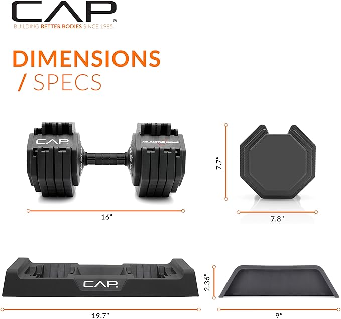 CAP Barbell ADJUSTABELL Adjustable 55 lb Hex Dumbbell Weights - Singles & Pairs | Multiple Handle Options